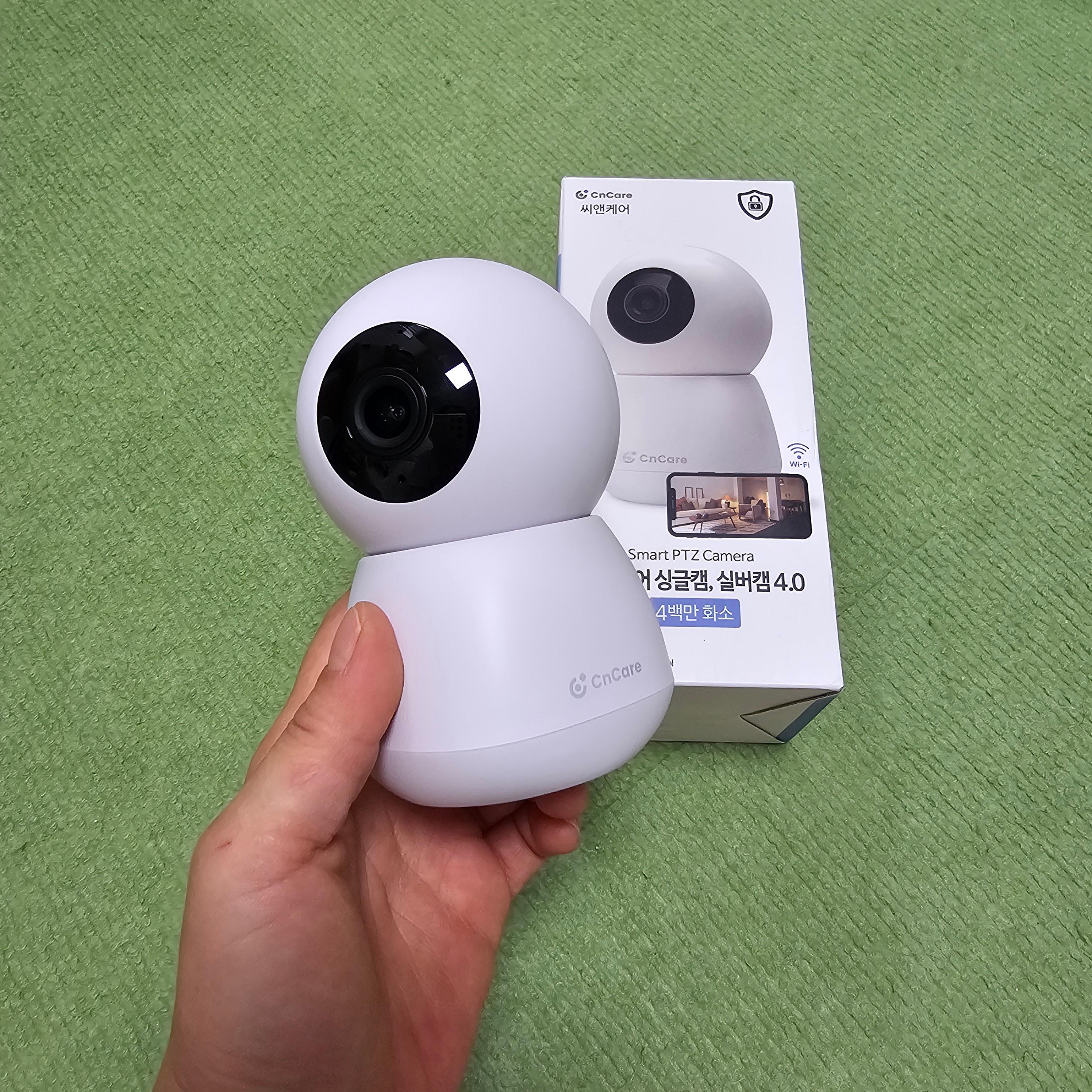 CnCare 씨앤케어 해킹 걱정 없는 국산 서버 홈캠 인공지능 홈카메라 400만화소 가정용 홈 CCTV 아기