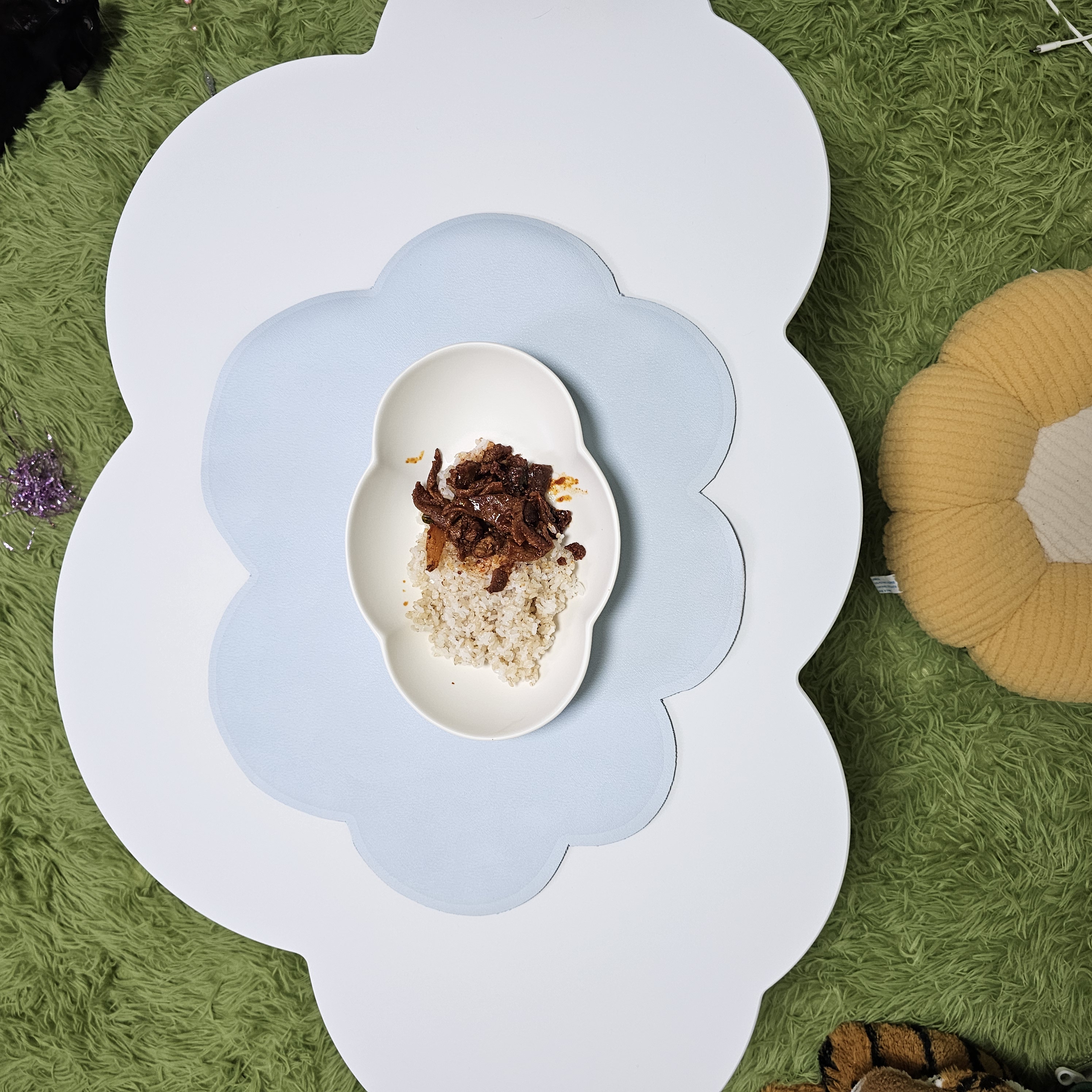 후기를 보니 아이가 있는 집에서 주로 사용하시는 것 같은데ㅎㅎ 나는 다 큰 어른이지만, 내 안에 있는 동심을 잃고 싶지 않아 집을 동화처럼 꾸미고 살고 있다. 테이블과 어울리는 식탁매트와 수저 세트, 그릇들도 장만했는데 나의 취향이 잔뜩 깃든 소품들로 꾸며놓으니 작은 원룸이지만, 집에 머무는 시간이 힐링 그 자체인 요즘☁️