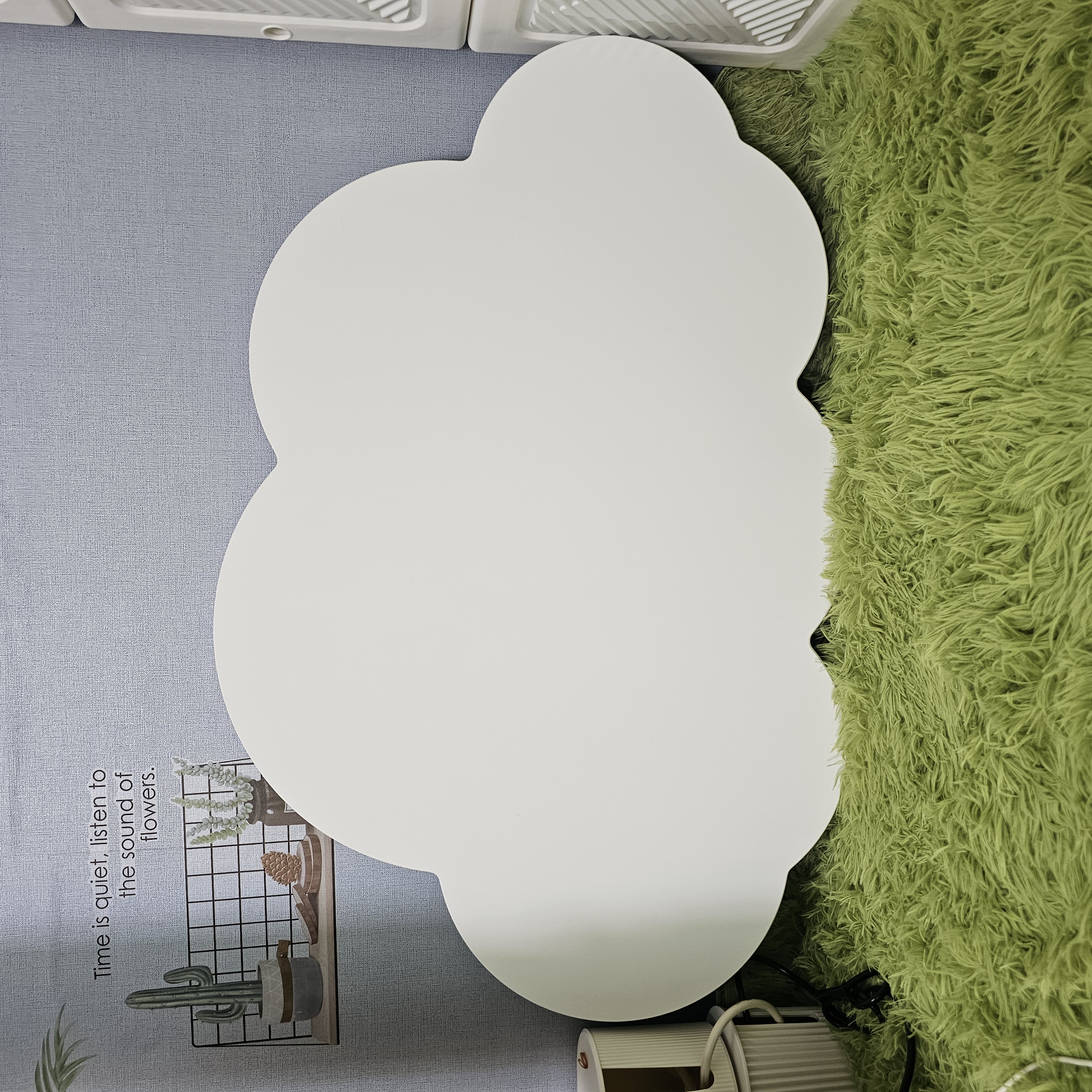 하얀 구름 모양이 너무 사랑스럽고, 무엇보다 접이식이라 공간 활용도 최고!! 바닥에 두고 좌식 테이블로 쓰기 딱 좋고, 책을 읽거나 노트북, 티타임용으로도 손색없다. 가벼워서 이동도 간편하고, 사용하지 않을 때 벽에 세워두면 인테리어 효과까지 덤으로 볼 수 있어서 너무 만족스러움.