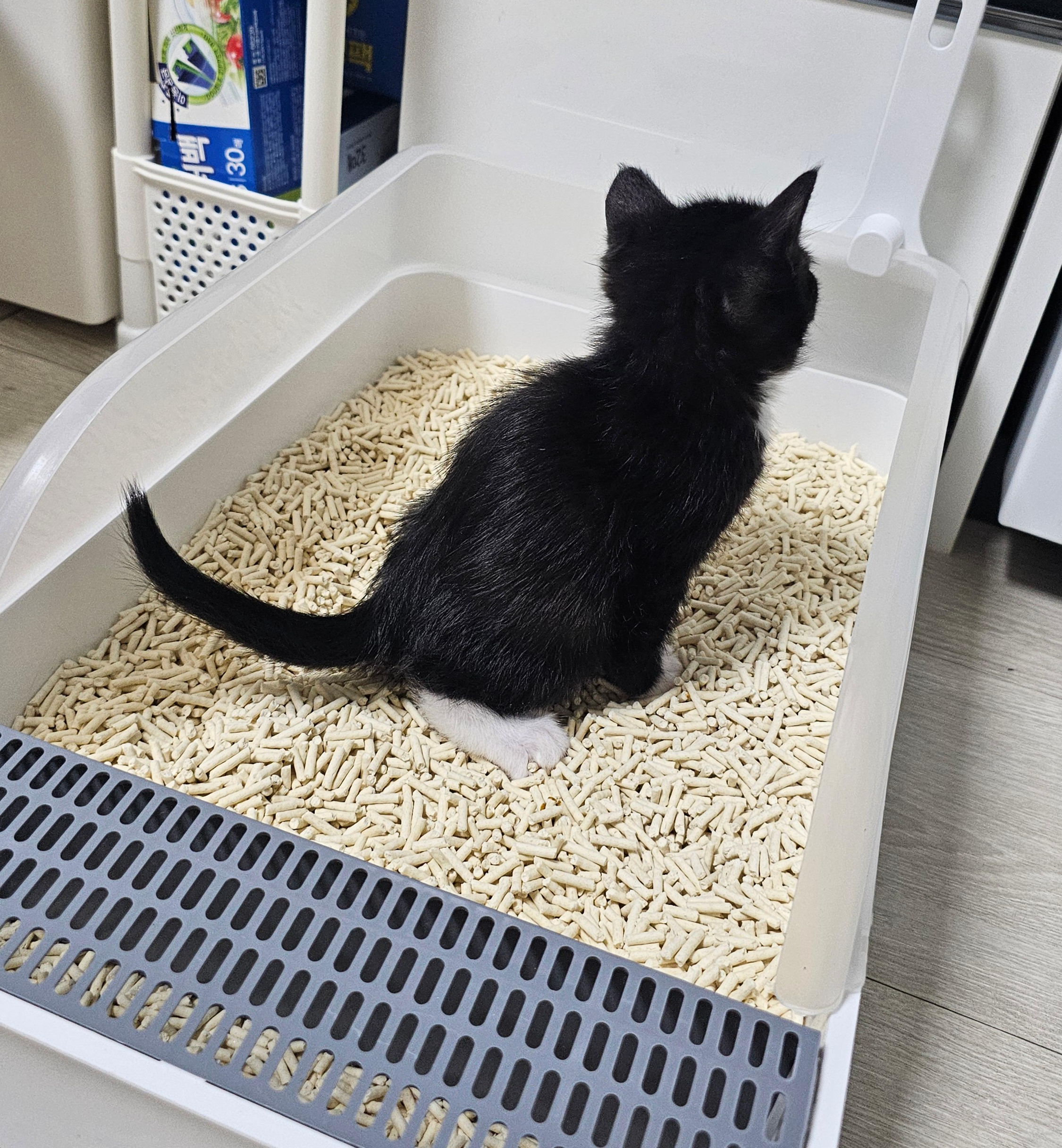 처음 샀던 두부모래는 베이비파우더 향이 나는 제품을 구매했었는데, 아기 고양이가 사용하기에 입자가 굵기도 하고, 향이 나는 모래를 좋아하지 않아서 용변 실수를 하는 시행착오를 겪어야 했다.ㅠㅠ
