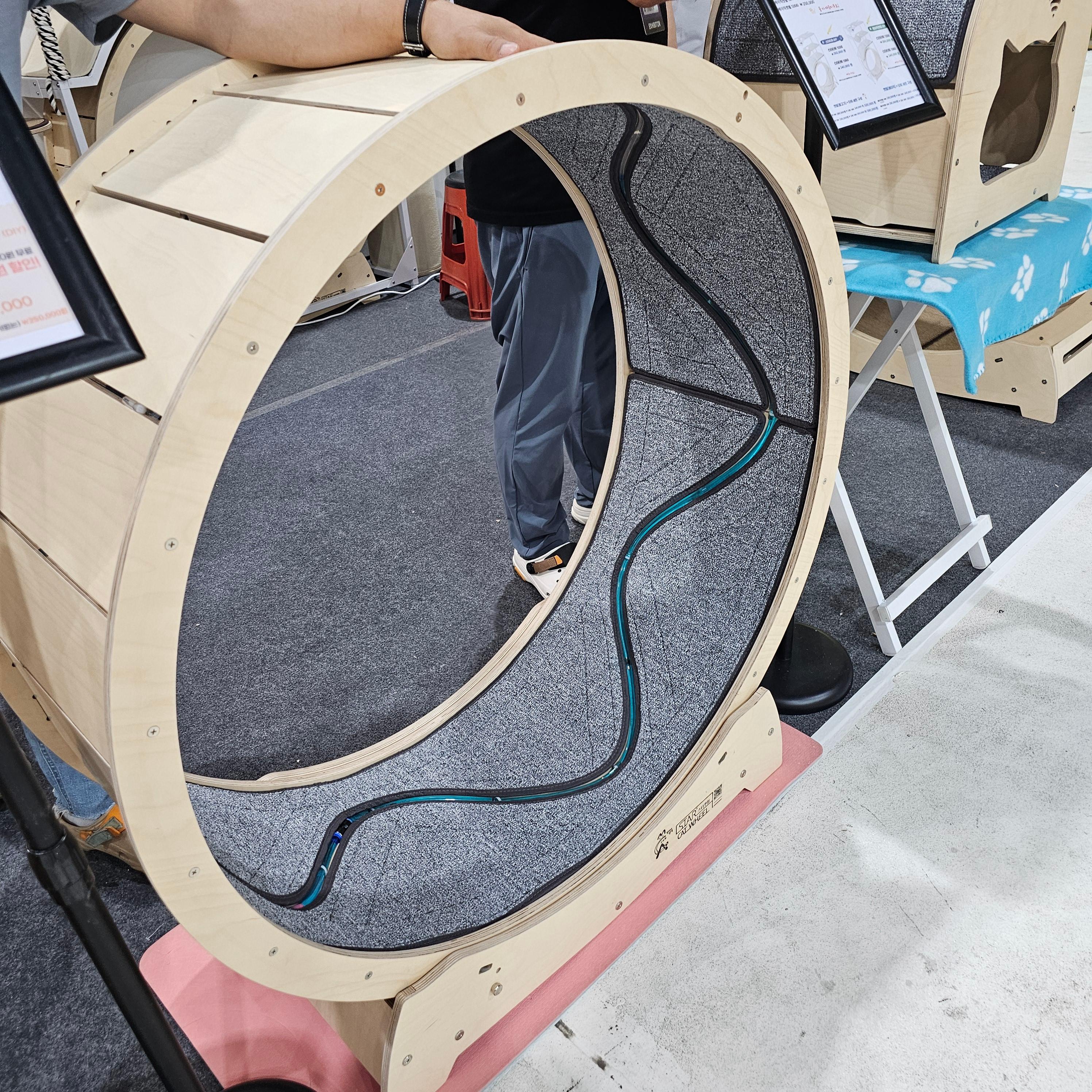캣휠은 조립 / 완제품 중 선택해서 구입할 수 있고, 배송비는 제주 산간 지역을 제외하고 무료라고 하셨다. 내가 가장 마음에 들었던 건 캣휠 안에 작은 물고기가 있어서 고양이가 흥미를 잃지 않고 꾸준히 가지고 놀 수 있다는 점이었다.