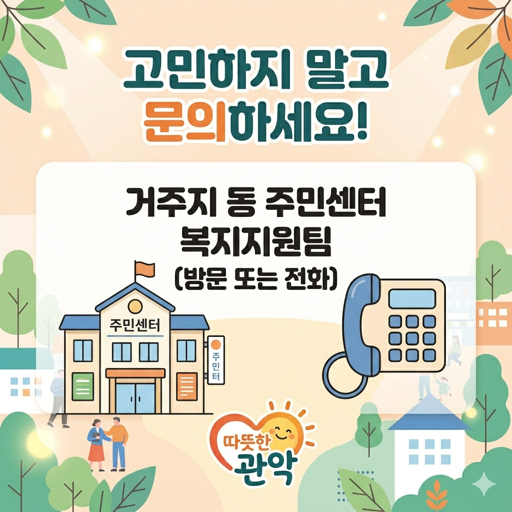 - 전화 문의: 거주지 동 주민센터에 전화를 걸어 '지역사회 통합돌봄' 지원 대상인지 먼저 확인하는 것이 빠르다.