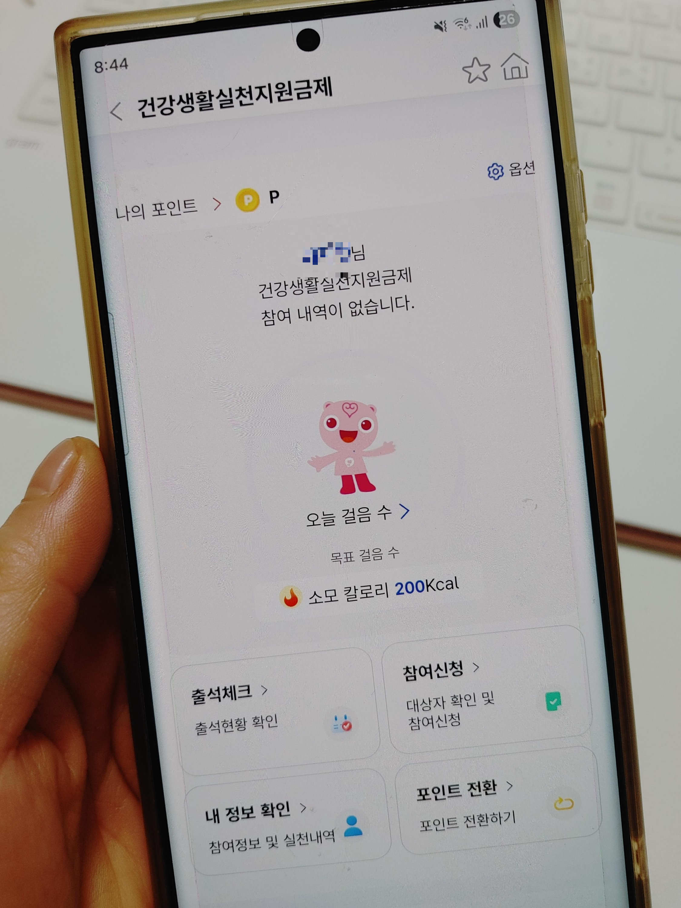 - '건강생활실천지원금제' 메뉴에서 본인이 대상자인지 확인한다.